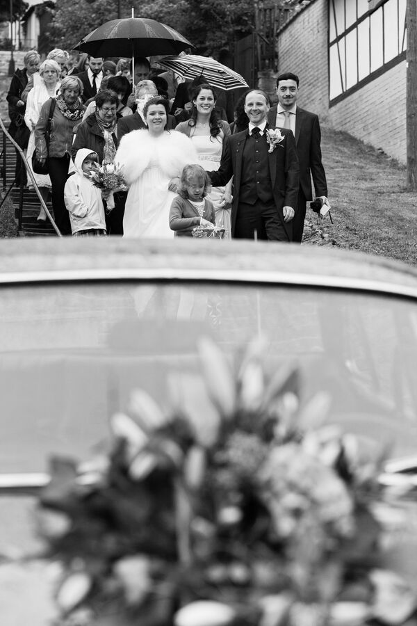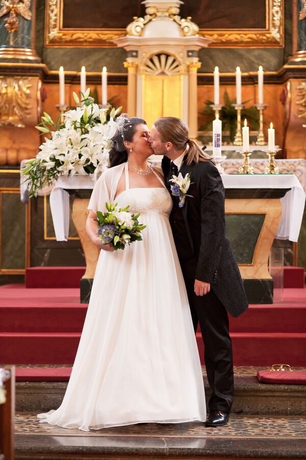 Im Oktober fand die kirchliche Trauung von Christin und René in einer wunderschönen Dorfkirche bei Erfurt statt. Die Stimmung war bestens trotz des ungemütlichen Herbstwetters. So gingen nach der Zeremonie die Feierlichkeiten in einem nahegelegenen Festsaal mit Sektempfang und bei einer gemütlichen Tasse Kaffee und Kuchen weiter. Kleine Überraschungen, Tanzeinlagen und verschiedene Aktivitäten für die Gäste machten den Abend für das Brautpaar unvergesslich.